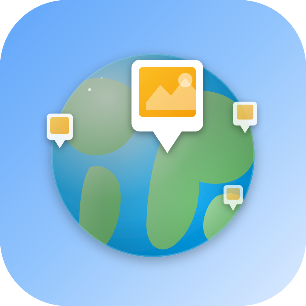 訪れた場所を地図上に記録し、写真と一緒に思い出を保存。